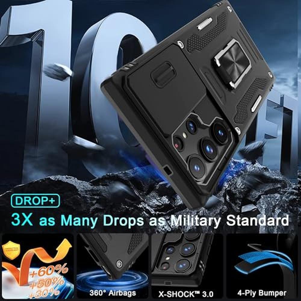 Deerlamn Case for Samsung Galaxy S25 Ultra | Premium Military-Grade Protection with Slide Camera Cover and Rotated Ring Kickstand | Ultimate Shockproof Defense