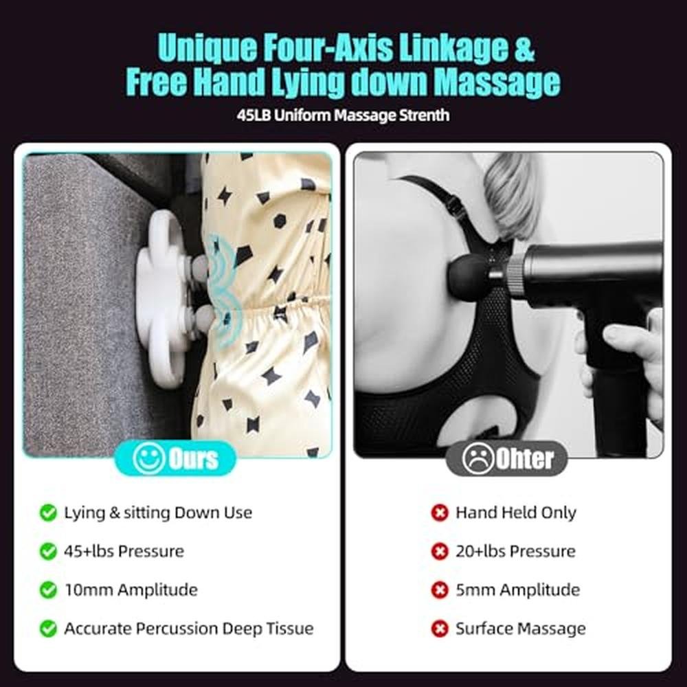 - Advanced percussion technology provides deep tissue massage, relieving sore muscles and enhancing circulation