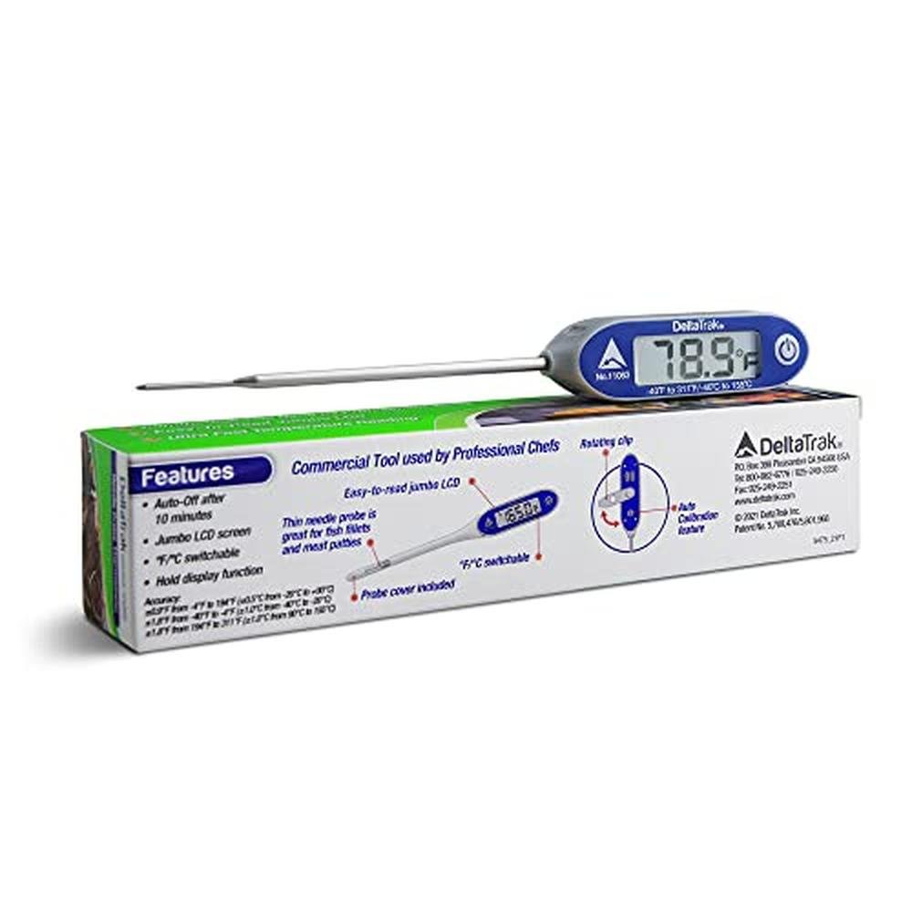 DeltaTrakessentials 11063 | FlashCheck Jumbo Display Auto-Cal Needle Probe Thermometer | High-Accuracy Temperature Measurement
