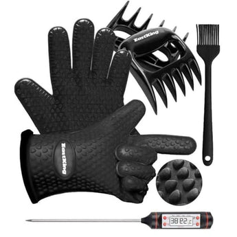 Set BBQ | EastKing Smoker Accessories Set Grilling Oven Gloves BBQ Claws Meat Thermometer and Silicone Brush | Premium BBQ Set for Cooking Barbecue Baking