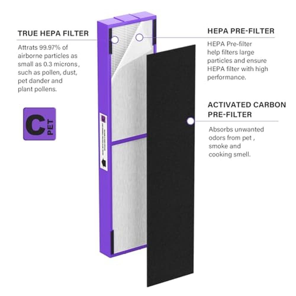With the FLT5250PT True HEPA Replacement Filter, you can unlock a world of benefits, from reduced allergens and odors to a significant decrease in airborne pollutants. This filter is not just a replacement part; it's a key to a healthier, more comfortable living or working space. The inclusion of 6 Carbon Pre-Filters further enhances its performance, tackling gases and larger particles with ease, thereby extending the life of the True HEPA filters and ensuring your air purifier operates at its best.