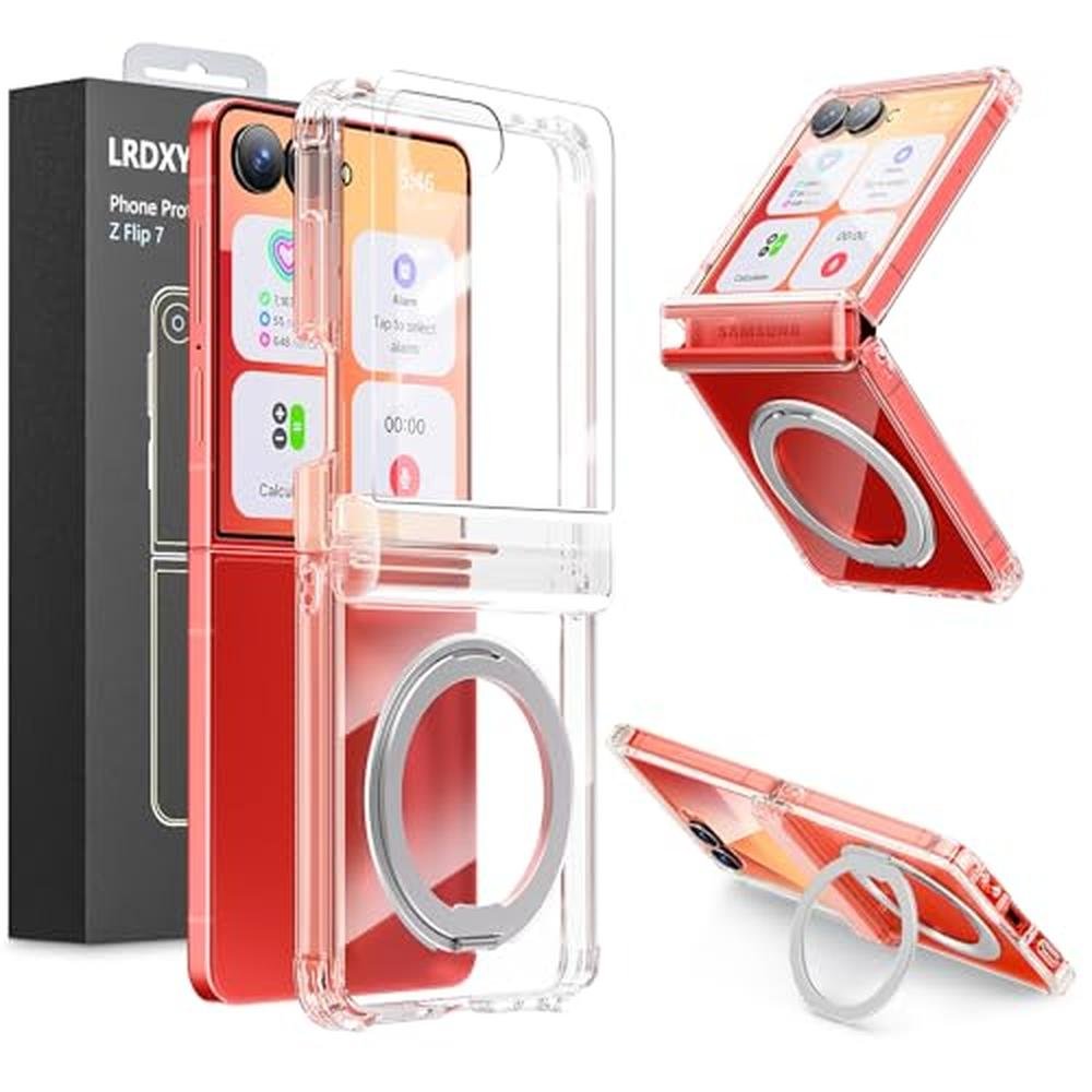 Experience the ultimate protection for your Samsung Galaxy Z Flip 7 with our expertly designed Magnetic Flip Case, providing superior hinge protection, a built-in screen protector, and a convenient kickstand. Compatible with MagSafe, this clear shockproof case ensures your phone remains scratch-free and vibrant, while the included lanyard and three mirrors add a touch of functionality and style. As a top-rated flip case for Samsung devices, our product stands out for its durability and sleek design, making it an excellent choice for those seeking a reliable flip phone case. With its competitive pricing and premium features, our flip case for Samsung Galaxy Z Flip 7 is a best-in-class solution.