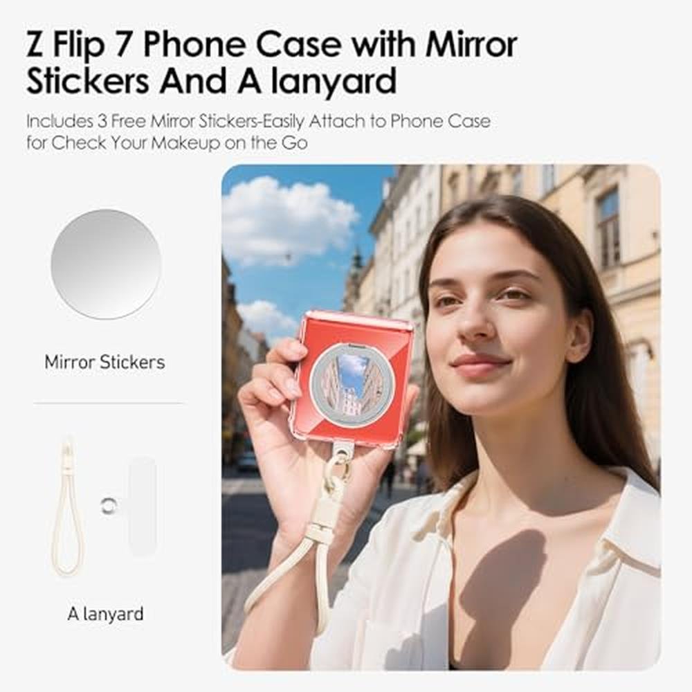 Discover the perfect fit and easy grip of our case, tailored for the 2025 Z Flip 7, with precise cutouts for ports, buttons, and speakers. Textured TPU sides provide a comfy, non-slip grip for everyday use. As a bonus, get three stylish mirror stickers for on-the-go touch-ups and a sturdy lanyard to secure your phone to your wrist or bag, perfect for commuting or active lifestyles.