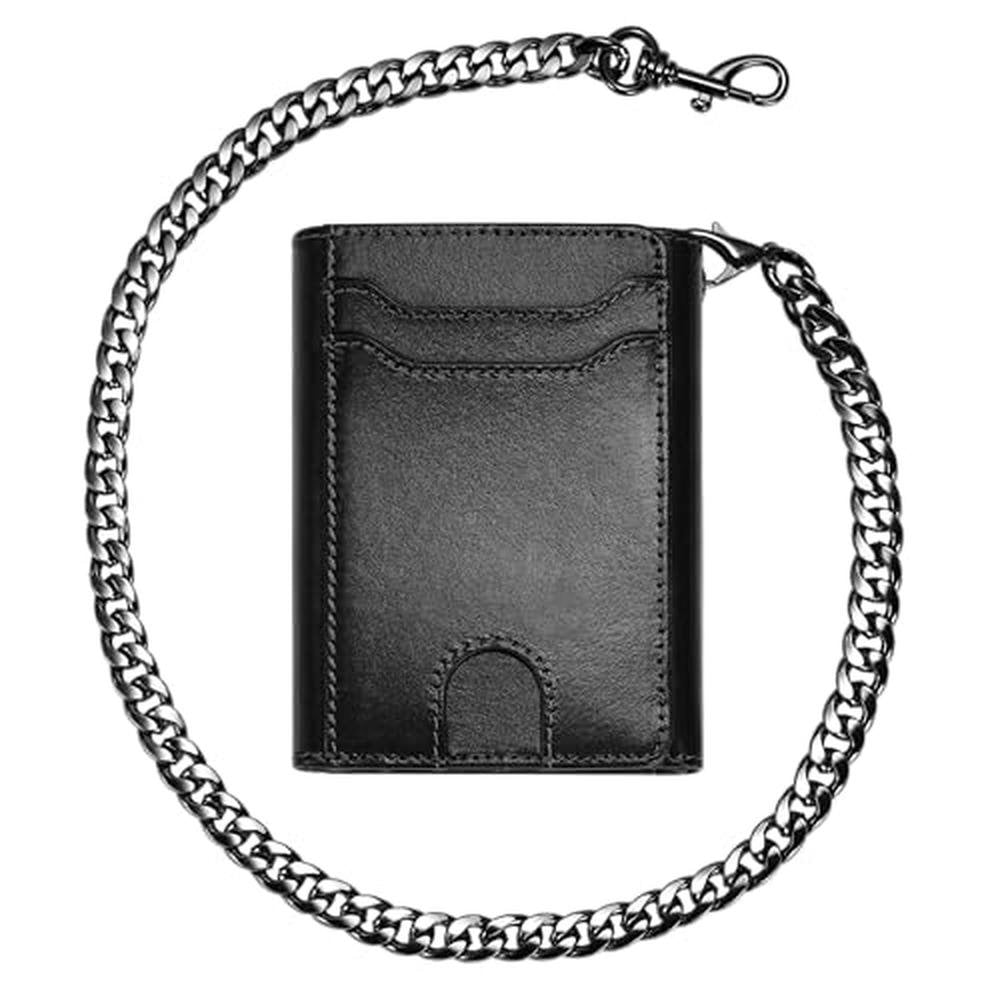 Crafted from premium genuine leather, this trifold wallet offers superior durability and a timeless, classic design that never goes out of style. Featuring a stainless steel anti-theft chain, it securely attaches to your belt loop, preventing loss or theft. Equipped with advanced RFID-blocking technology, it protects your credit card information from digital theft. With 12 card slots, a bill compartment, and an ID window, the wallet offers ample storage without bulk. Ideal for daily wear or outdoor activities, it also makes a thoughtful gift for any occasion.