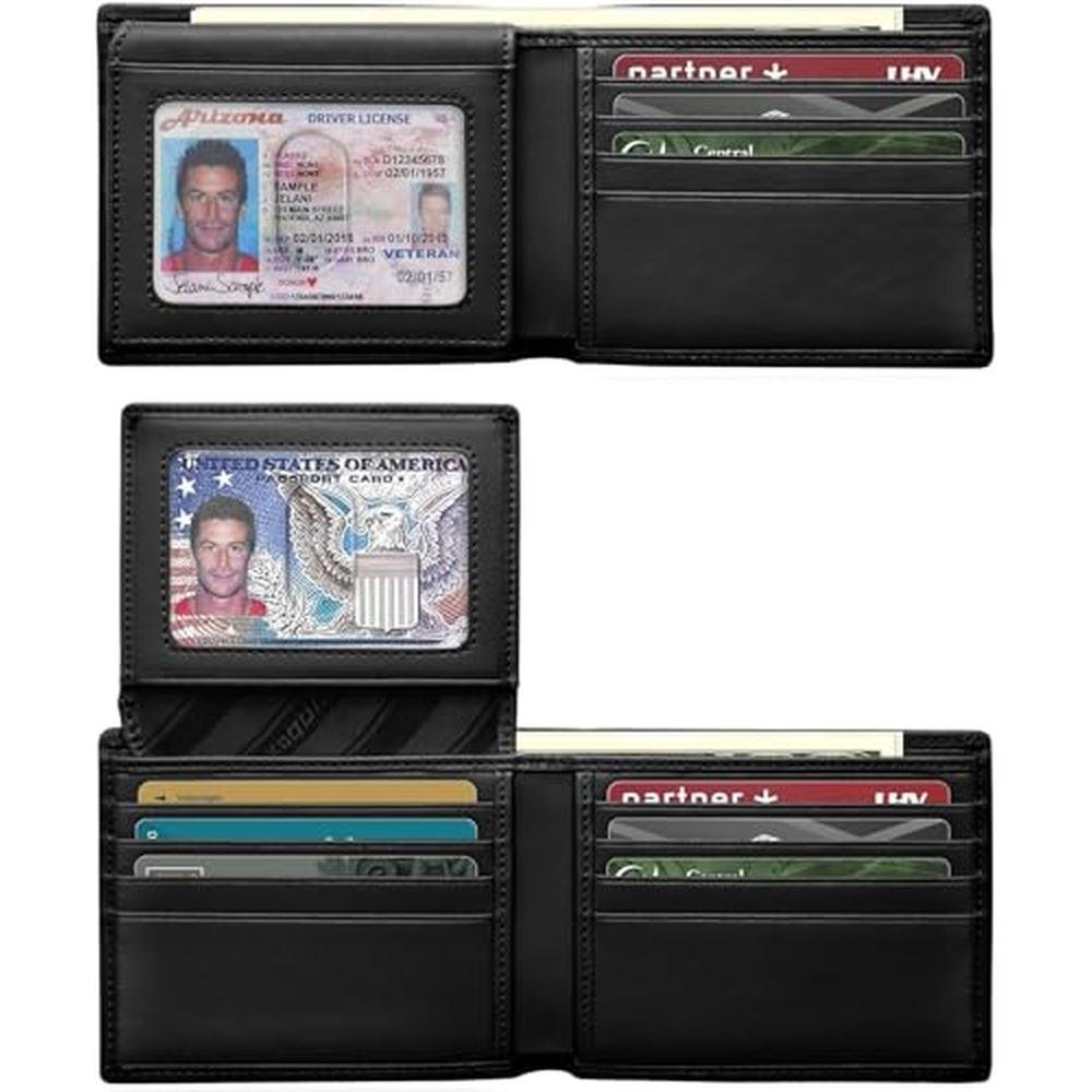 - Dual Flip-ID Quick Access: This bifold wallet features two reversible ID windows, allowing instant visibility of licenses or ID cards from either side. Both card holder windows rotate smoothly for single handed access. Maintains card security while reducing wear from frequent removal in your wallet