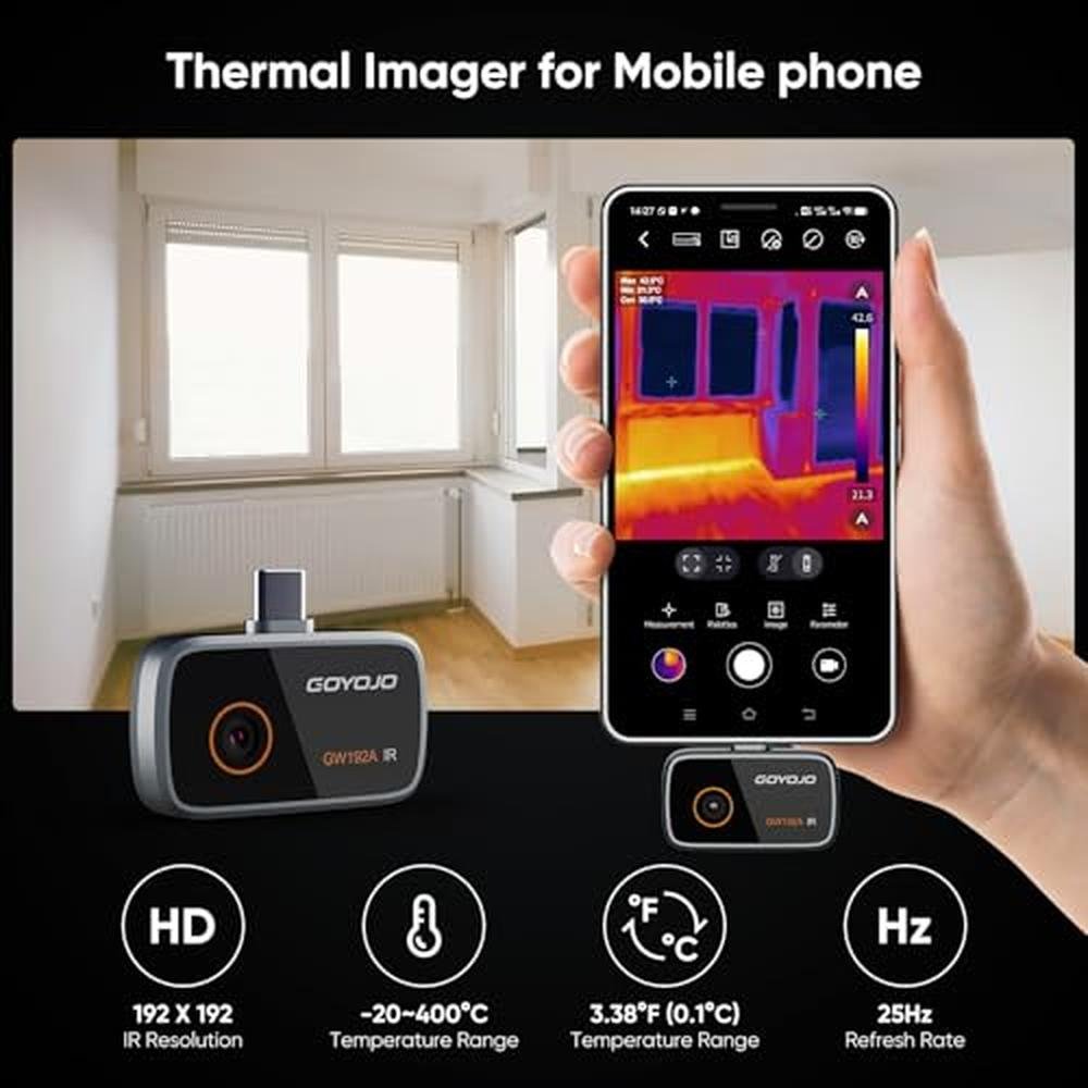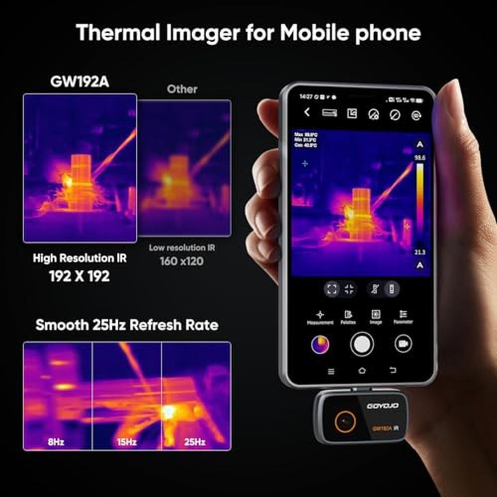 GOYOJO 192x192 IR Resolution Thermal Imaging Camera for Android/iphone 15/16 iOS Series Water Leak Detection, HVAC, Electrical, Plumbing, Automotive Repair, Home Inspection, DIY-USB-C Infrared Imager
