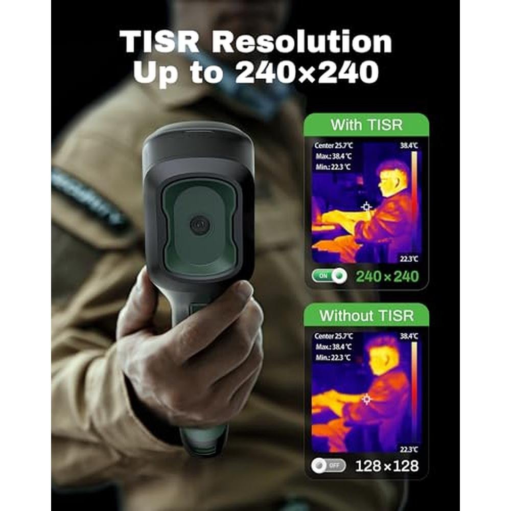 Experience the cutting-edge H128 Handheld Thermal Camera, designed for industrial use and various applications, offering a high-resolution 240 x 240 TISR thermal imaging experience. With its exceptional thermal imaging capabilities, this device is perfect for professionals and enthusiasts alike. The H128 boasts a 24-hour battery life, 25 Hz infrared camera, and a temperature range of -4 to 842 degrees, making it an ideal thermal camera for home security, wildlife observation, and automotive applications.