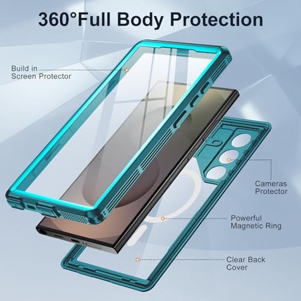 Experience unparalleled protection for your Samsung Galaxy S25 Ultra with the Haireca Waterproof Case, expertly designed to fit seamlessly with Magsafe technology. This IP68-rated case offers exceptional underwater protection, allowing you to capture stunning photos and videos up to 12 feet underwater. Built with military-grade shockproof materials, it can withstand drops from up to 12 feet, ensuring your device remains safe and secure. The built-in screen and lens protector provides full-body protection, safeguarding your 6.9" S25 Ultra from scratches and damage. With its sleek teal design, this case is not only functional but also stylish. Whether you're an adventure-seeker or just looking for reliable protection, the Haireca Waterproof Case for Samsung Galaxy S25 Ultra is the ultimate solution. This premium case is designed to protect your device from water damage, especially in coastal areas such as California, Florida, and Texas during the summer months when outdoor activities and water sports are on the rise. It is used by outdoor enthusiasts, professional athletes, and those whose occupations require them to be in contact with water or humid conditions. The case is used for safeguarding smartphones from the elements, capable of withstanding water exposure, and is used as a protective measure during activities like swimming, surfing, and beach outings. It is used on S25 Ultra to ensure that the device remains functional and safe, even when exposed to water or dust. The waterproof phone case is used in daily protection, from water sports to outdoor work, and is typically used in locations such as beaches, pools, and other water bodies where the risk of water damage is high during the summer months.