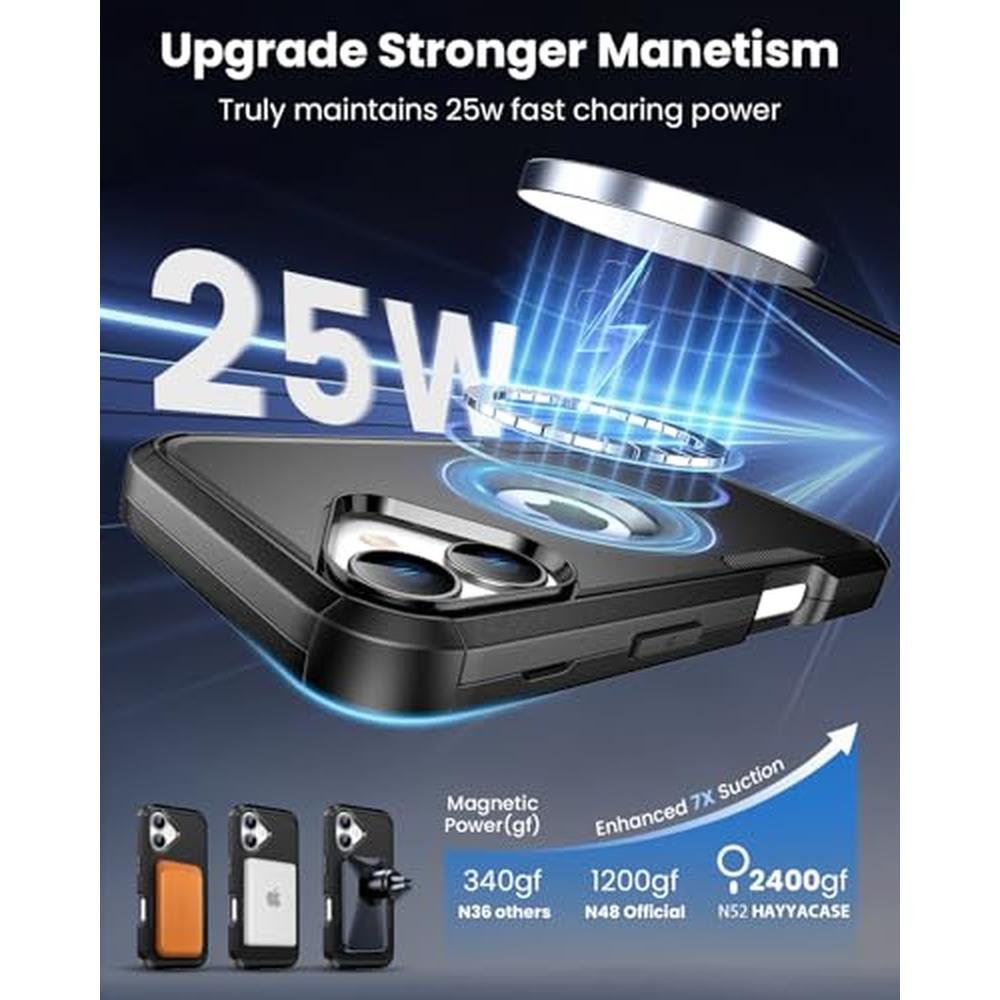 Indulge in the ultimate protection for your iPhone 17 with the HayyaCase, a premium, high-end, heavy-duty cover designed to withstand the most demanding conditions. As a top-tier choice for discerning iPhone users, the HayyaCase combines superior, military-grade protection with a sleek, sophisticated, black design that perfectly complements your device. With a built-in, versatile belt clip holster, you can securely attach your phone to your belt, keeping it within easy reach. Plus, the HayyaCase is compatible with Magsafe, allowing for seamless, wireless charging. To further safeguard your screen, the HayyaCase includes 2X, high-quality screen protectors, providing an extra layer of defense against scratches and cracks. Whether you're looking for a reliable, executive case for work or play, the HayyaCase for iPhone 17 is the perfect, first-class solution.