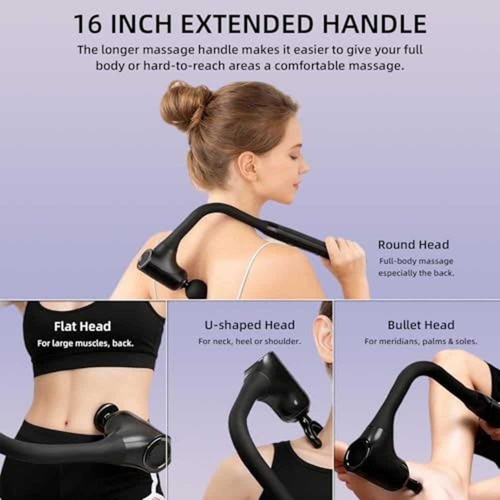 - The iKyoor Massage Gun features an extended handle and 12MM percussion capabilities for effortless massage of the neck, foot, leg, and shoulder