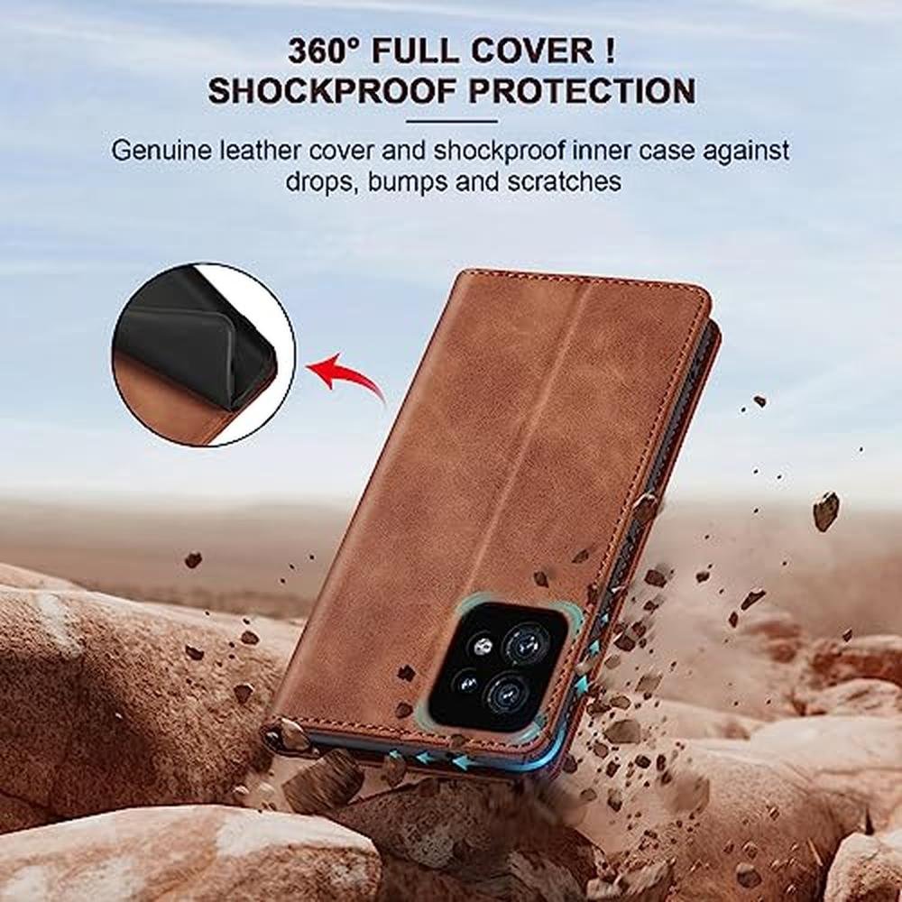 Jasonyu Flip Wallet Case for Motorola Edge+ (2023)/Moto Edge Plus (2023),Leather Magnetic Folio Cover with Card Holder,Kickstand - TPU Shockproof Durable Protective Phone Case,Brown