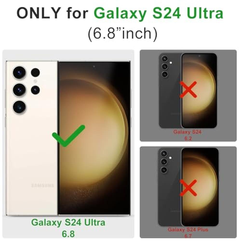 Please Note: This wallet case is exclusively designed for Samsung Galaxy S24 Ultra, [Not for Galaxy S24 or other phones] Please ensure to check your phone model before placing an order. Thank you! The color of the Galaxy S24 Ultra Leather Wallet Case shown in pictures may slightly differ from the actual product due to variance in lighting or computer display. If the case you receive has a significant difference with the picture, please promptly contact us to arrange an exchange. For optimal screen protection, we recommend using a Screen Protector Tempered Glass to safeguard against scratches from cards.