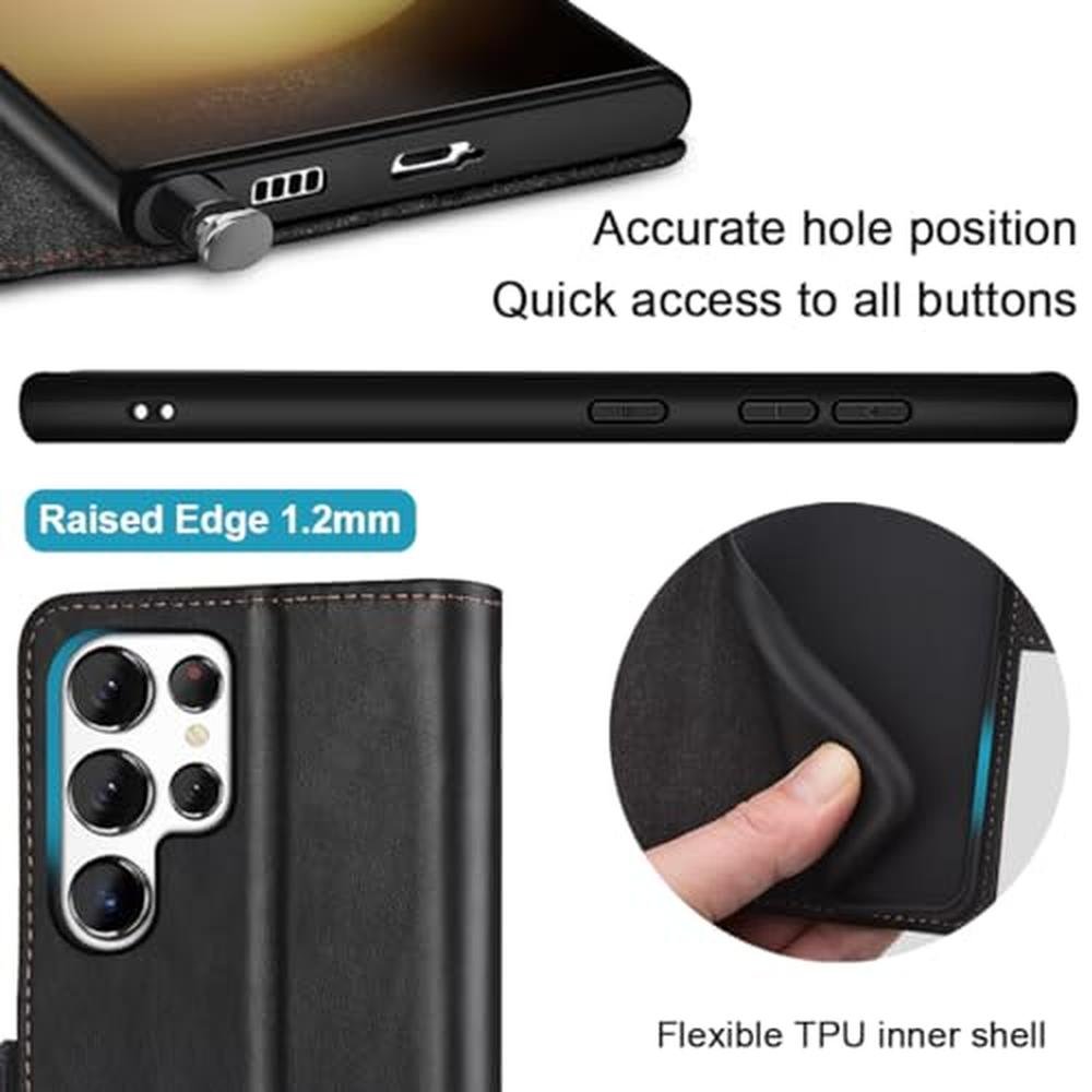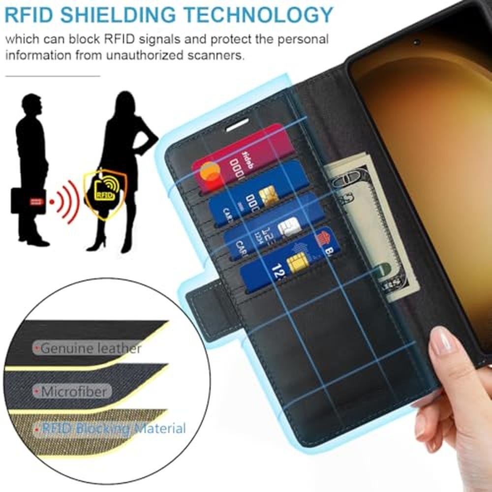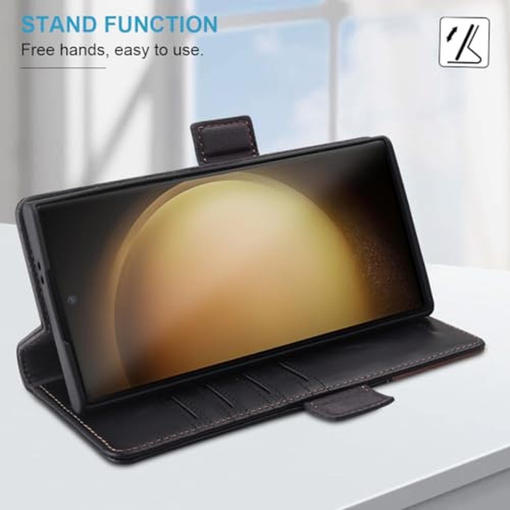 S24 Samsung | Samsung Galaxy S24 Ultra Case | Genuine Leather RFID Blocking Wallet Case with Card Slot and Kickstand