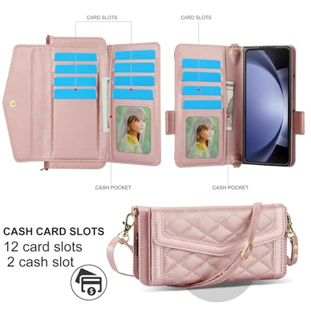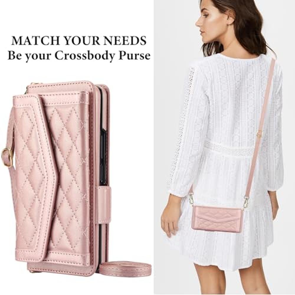 Konstreet for Samsung Galaxy Z Fold 7 Wallet Case Features & Benefits include a secure and stylish wallet design with RFID-blocking protection, multi-functional carrying options with an adjustable crossbody strap, and hands-free viewing with a built-in kickstand. The case is also perfect for daily use and travel, with a lightweight and protective design that combines a phone case, wallet, and crossbody bag in one.