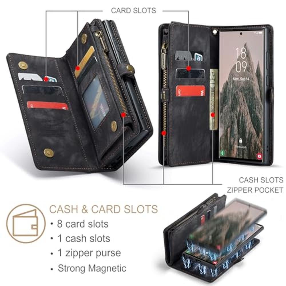Experience the ultimate in protection and convenience with the Kowauri Wallet Case, expertly designed for the Samsung Galaxy S24 Ultra. This high-end wallet case seamlessly combines a sleek leather wallet design with a detachable magnetic shockproof back case, providing comprehensive 360-degree protection for your device. The zipper purse folio features multiple card slots, allowing you to store your credit cards, cash, and ID in one convenient and organized place. The included wrist strap enables easy carrying, making it perfect for daily use. Whether you're seeking a premium wallet phone case for Android or a stylish accessory, this Kowauri wallet case is the epitome of sophistication and functionality.