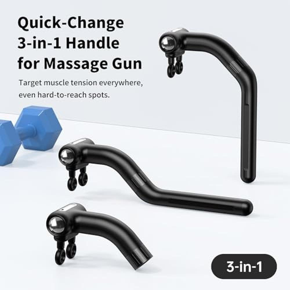Meet the LC-HZLJ LMG520 Massage Gun: Experience deep, relaxing massage without limits, anytime, anywhere. The massage tool is designed to easily target hard-to-reach areas like your back, waist, and shoulders. Enjoy the convenience and comfort of a professional-grade massage, all on your own terms. The dual-head percussion system delivers simultaneous dual-area massage, expanding coverage while minimizing repositioning. The 3-in-1 ergonomic handle is easy to hold and converts into 3 configurations: Compact handle, Curved handle, and Straight handle.