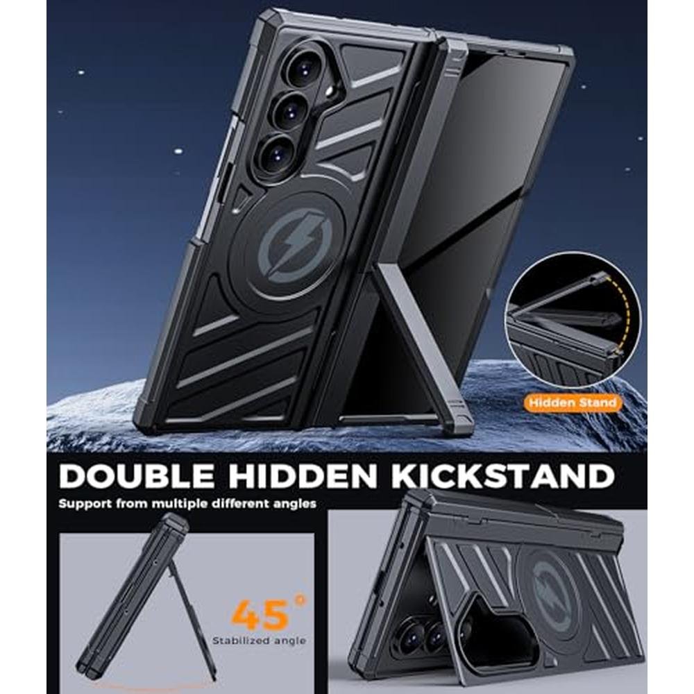 LEIAU Heavy Duty Case for Samsung Galaxy Z Fold 7 5G (2025) Military-Grade Armor Compatible with MagSafe, Hinge Protection & Dual Kickstand Shockproof TPU + PC | Wireless Charging Compatible | Screen Protector Safe Engineered for Uncompromising Protection & Convenience Shield your premium Samsung Galaxy Z Fold 7 2025 against drops, scratches, and daily chaos. This military-grade heavy duty case combines advanced shockproof TPU + PC armor with reinforced corners, delivering ultimate drop protection without bulk. Compatible with MagSafe accessories (chargers/wallets/mounts), deploy hidden dual-angle kickstands for hands-free viewing, and trust spring-loaded hinge protection to guard your fold's core mechanism. All while preserving full screen sensitivity and wireless charging capabilities.