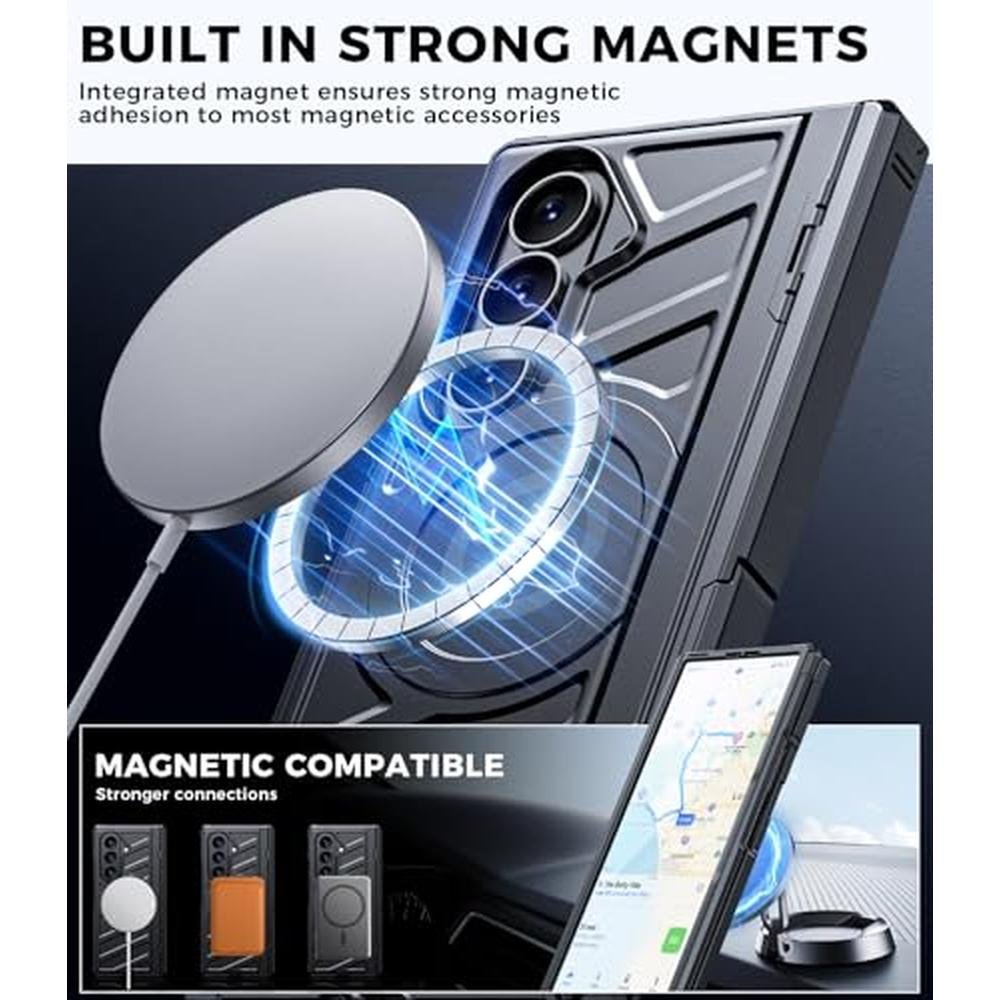 5-Point Defense System for Your Galaxy Z Fold 7: MILITARY-GRADE SHOCKPROOF ARMOR Maximum drop protection meets everyday elegance. Fortified corners and dual-layer defense (TPU + PC) absorb impacts from waist-high drops*, while scratch-resistant materials keep your Fold 7 5G pristine. Rated for extreme durability on commutes, travels, and active lifestyles. Compatible with MagSafe Snap & go wireless freedom! Compatible with MagSafe magnets align perfectly with chargers, car mounts, card holders, and grips. Fast wireless charging compatible ditch cables at coffee shops, desks, or on road trips. Expand your Fold 7 2025's functionality instantly.