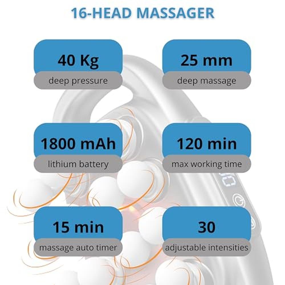 - Features 16 interchangeable heads to target every part of your body, providing a comprehensive massage experience
