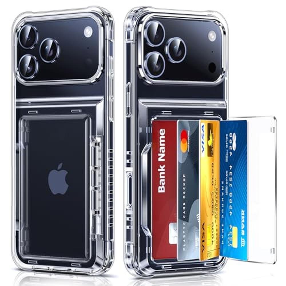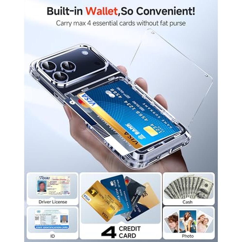 Leyi iPhone 17 Pro Max Case | Clear Wallet Credit Card Holder Cover | Military-Grade Drop Proof