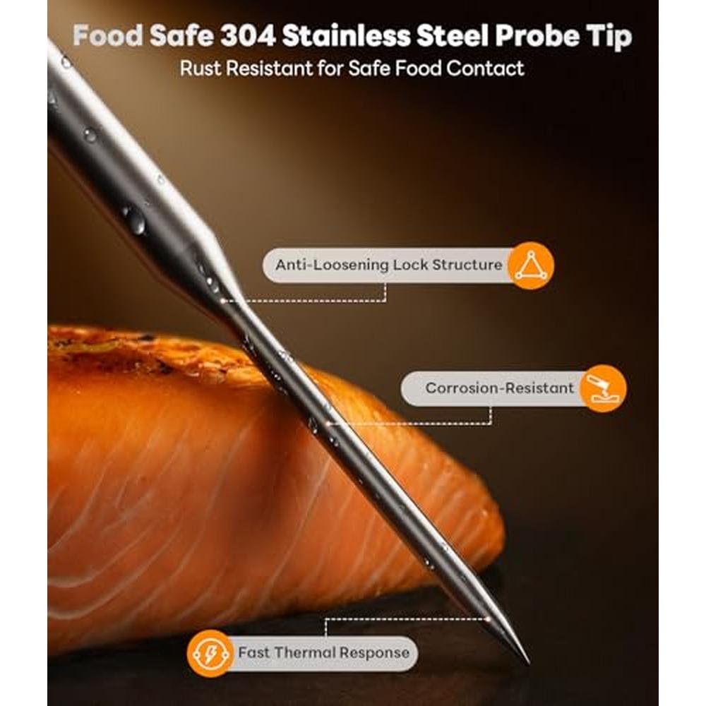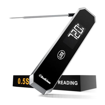 Indulge in the world of precise temperature control with the LockView FM151 Meat Thermometer, expertly designed to elevate your cooking, grilling, BBQ, and smoker experiences. This premium instant-read digital probe boasts a rapid 0.5-second response time, ensuring you achieve perfect doneness every time. The LockView FM151 features advanced Temp Lock and Auto-Resume functions, allowing for effortless temperature monitoring. Constructed from durable 18/8 stainless steel and rated IP67 waterproof, this thermometer is built to withstand the rigors of frequent use. Whether you're cooking meat, grilling vegetables, or making candy, the LockView FM151 is the perfect companion for any culinary task. With its multi-tested accuracy and rugged design, this thermometer is a must-have for home cooks and professional chefs alike, offering a superior cooking experience.
