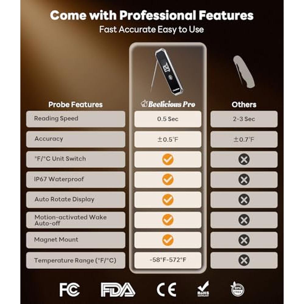 LockView FM151 Meat Thermometer | LockView FM151 High-End Instant Read Digital Probe | Temp Lock Auto-Resume Technology