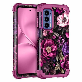 Moto Edge 2021 Case | LONTECT Magenta Floral 3-in-1 Hybrid Shockproof | High-End Protective Cover for Women