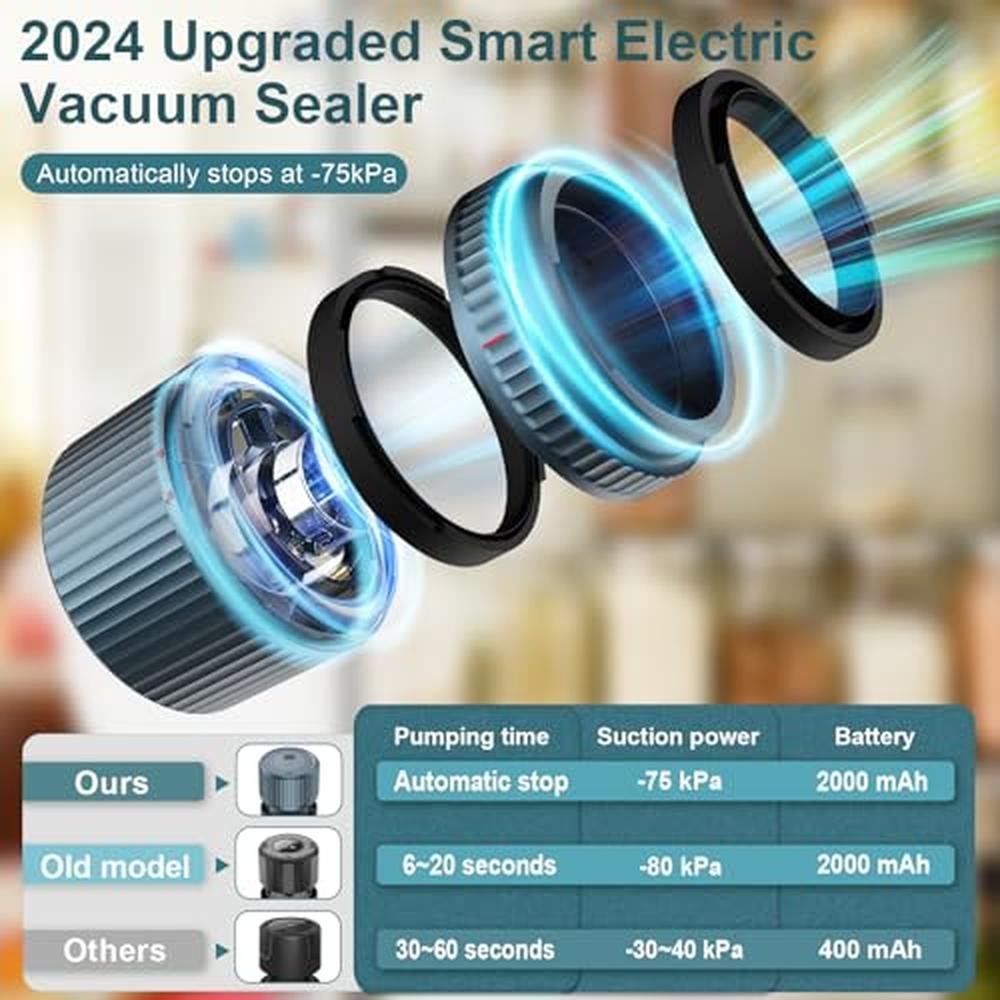 Mason Jar Vacuum Sealer | M12 Auto Stop Electric | Premium Food Preservation | Advanced Smart Technology