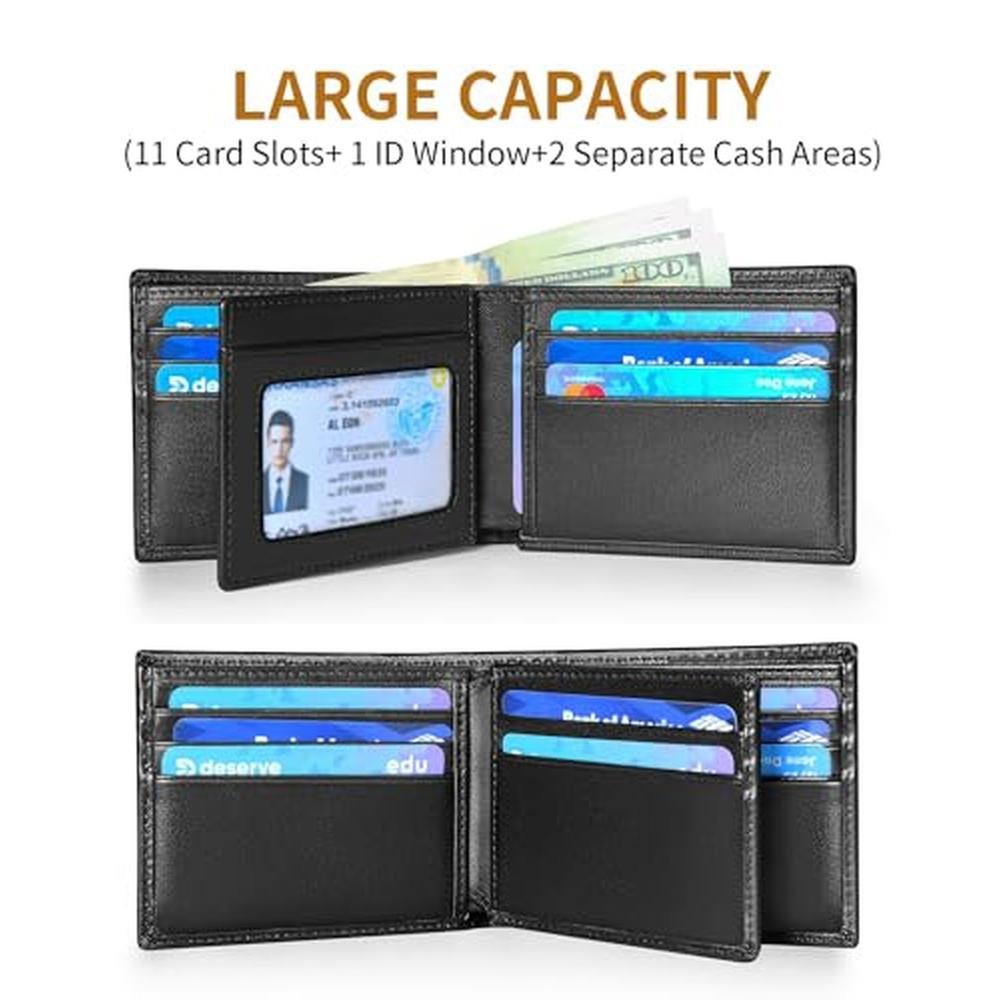 Genuine Leather Mens Wallet, Bifold Wallet for Men, Large Capacity Mens Wallets with Window, 11 Credit Card Slots