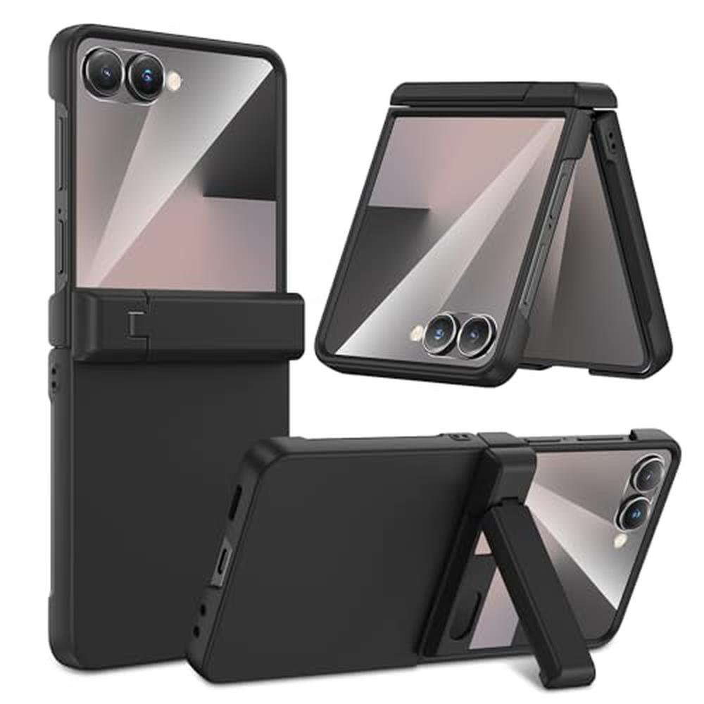 Whats in the box Samsung Galaxy Z Flip 7 Case with Hinge Protection & Hidden Foldable Kickstand & Built-in Screen Protector