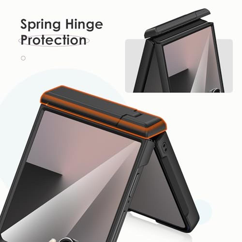 This Maxdara phone case is only compatible with Samsung Galaxy Z Flip 7 5G 2025 Released. The zflip 7 case with adjustable stand allows you to enjoy hands-free viewing everywhere. When the stand feature is not in use, this foldable stand is ready to hide and allows your phone to lie flat on a flat surface. The upgraded spring hinge design is perfect for providing full protection for your Z Flip7 phone hinge, and you can unfold and fold your phone freely. The responsive, scratch-resistant screen protector, built with tempered glass, protects your front screen from drops and scratches. Customized for your z flip 7, precise cutouts and holes fit your phone buttons, charging ports, and speakers tightly, not easy to fall off.
