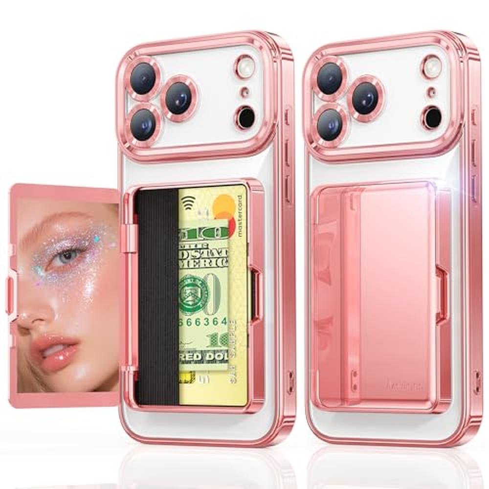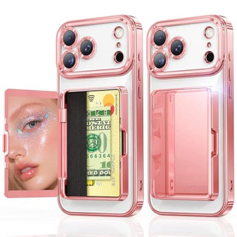 | Special features | Card Holder with Mirror & Kickstand; Card Holder Slot for 3-4 Cards and Cash; Soft Touch & Shock-Absorbent Bumper; All-inclusive Lens Protection; Shining Edges & Clear Back; Electroplating Process & Never Peel |