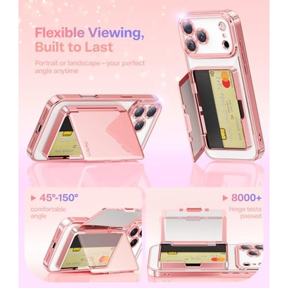 Experience the epitome of protection and convenience with the Meifigno Designed Case Wallet, expertly crafted for the iPhone 17 Pro Max. This exquisite, rose gold case is tailored for women, boasting a sleek design, a built-in mirror for effortless touch-ups, and a kickstand for hands-free viewing. The case also features surround raised lens protection, ensuring your camera remains safeguarded, and a card holder capable of storing 3-4 cards and cash, providing easy access to your essentials. With its superior construction and functional design, this high-end case is perfect for daily use, offering a secure fit and unparalleled protection. Whether you're seeking a reliable, top-tier case that combines style and functionality, the Meifigno Designed Case Wallet is the ultimate choice, redefining the standards of premium phone protection.