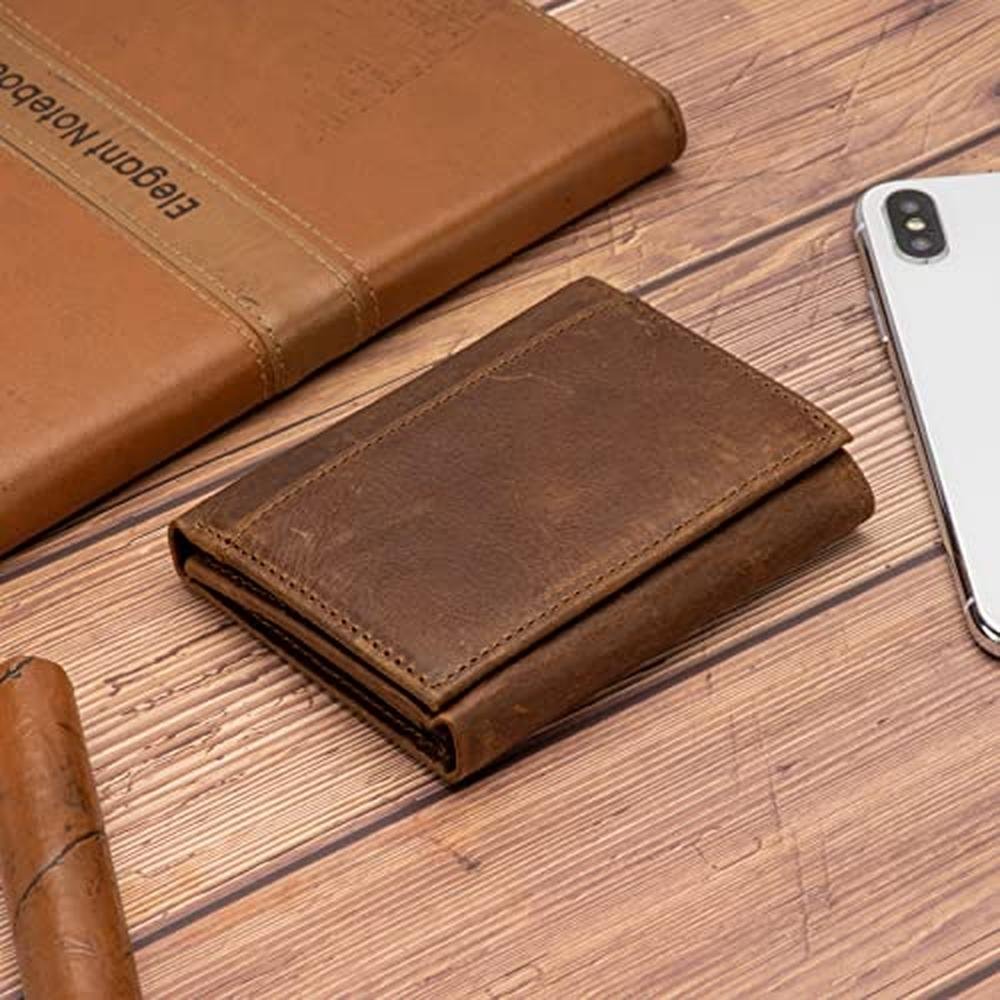 Mens Leather WalletMens Trifold Wallet Rfid Blocking Genuine Leather Wallet For Men brown)