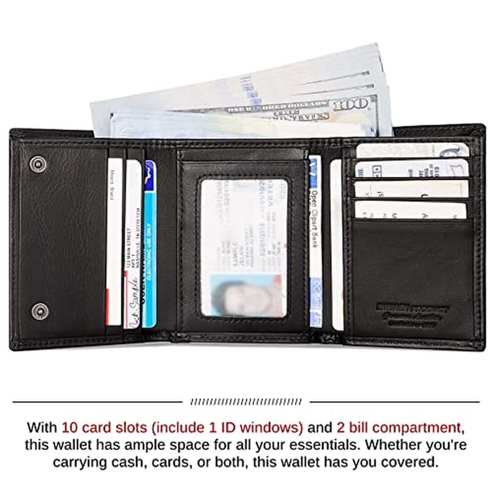 - Genuine Leather Quality: Crafted from premium genuine leather, this tri-fold wallet offers superior durability, exquisite craftsmanship, and a stylish appearance.