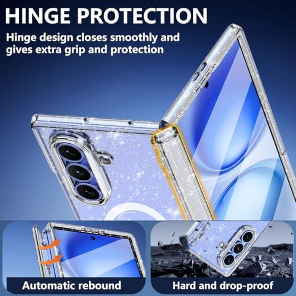 Indulge in the ultimate protection and style with the Meshine Magnetic Case, expertly designed for the Samsung Galaxy Z Fold 7 (2025). As a top-tier choice for Galaxy Fold users, this case boasts a sophisticated combination of features, including a built-in screen protector, hinge protection, and shockproof design, making it an ideal accessory for women and girls who want to safeguard their device. With its exquisite glitter clear finish, this hard case not only provides a sleek aesthetic but also ensures seamless compatibility with MagSafe, allowing for effortless charging and accessory attachment. Whether you're looking for a reliable Galaxy Fold 7 case or seeking the best deals on Galaxy Fold accessories, the Meshine Magnetic Case is an excellent choice, offering superior protection and functionality to elevate your overall Galaxy Fold experience.