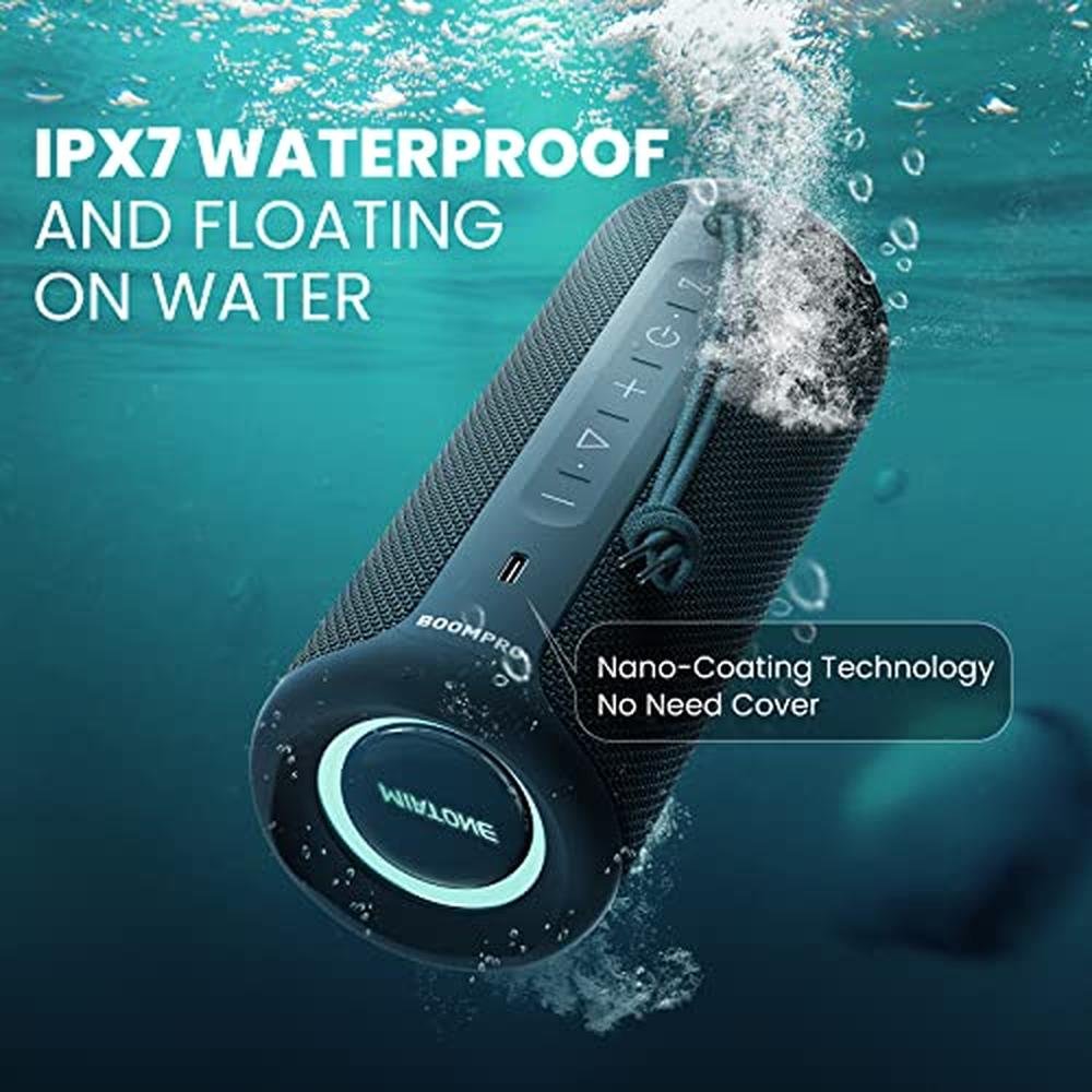 Miatone V5.3 Bluetooth Speakers1 IPX7 WATERPROOF: This speaker is IPX7 waterproof, it has been designed to be used outdoor or travel. IPX7 water-resistant also means it can float when it falls in water. 2 40W STEREO SOUND: The built-in 40W horns of the speaker can increase the stereo sound effect, which makes the music sound is more penetrating, exciting and shocking. Upgraded and enhanced Loud volume, strong bass Sound. Louder and Clearer. 3 PORTABLE & CONVENIENT:5 BoomPro 5.3 Bluetooth VERSION: With built-in Bluetooth version V5.3, and it accepts an earlier version of the connection technology, and has a more stable connection signal, which can reduce version problems and connection stability. More Advanced and More Stable.6 MORE USE TIME: This Bluetooth speaker with 5000mAh battery, and it allows playtime over 17Hours-20Hours. Product net weight: 500g