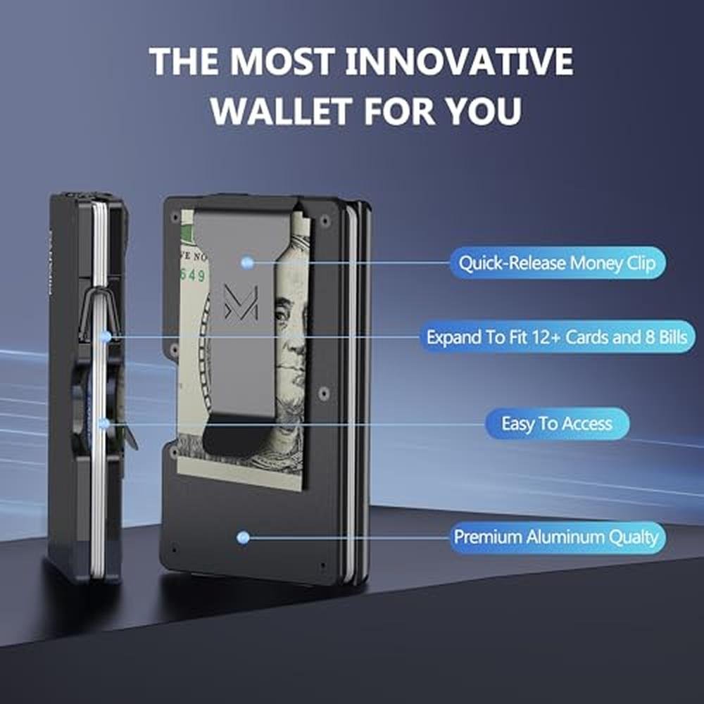 - Premium Wallet For Travel: Be confident in MIFANYO wallet please, no matter where you go. Our minimalist card wallets are manufactured from the highest grade military Aluminium materials available. Ergonomic, lightweight, scratch-resistant. With a push of your finger, you will have easy access to every card within our wallet. Just 3.48 x 2.17 x 0.32 inches, can accommodate 1-12 cards and 6 bills.
