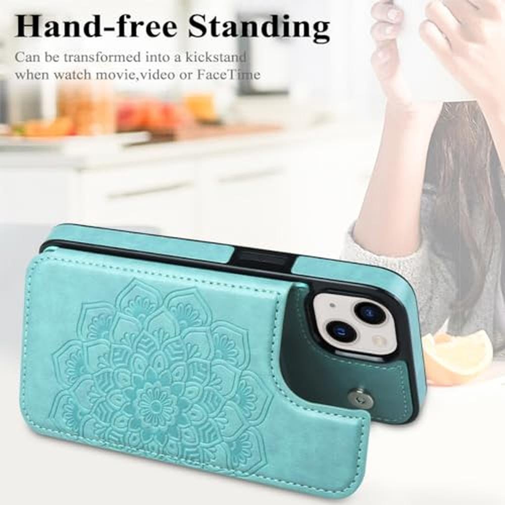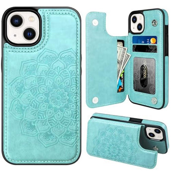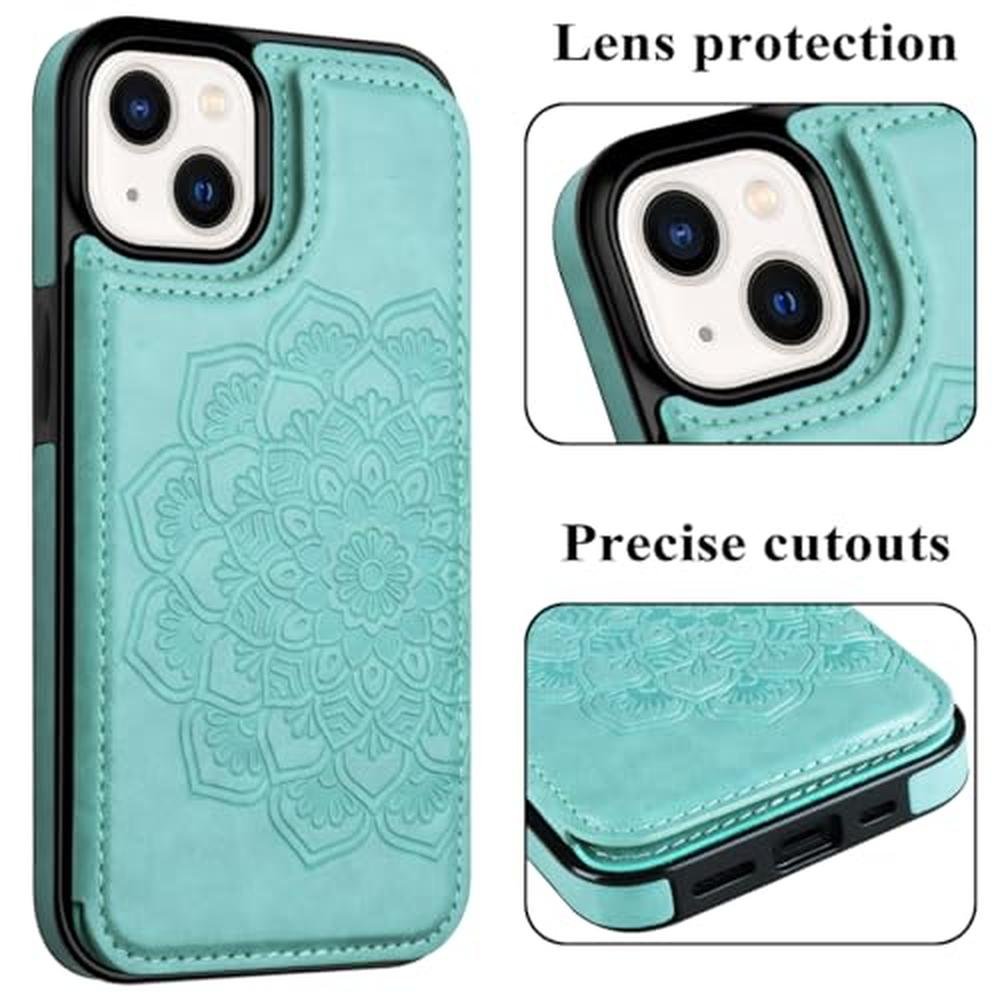 Attention Please! This case only compatible with iPhone 13 6.1 inches MMHUO Creative Embossed Mandala Premium PU Leather Wallet Case with Credit Card Holders compatible with iPhone 13. 1. Creative back flip card slots: It is not only a normal protective phone case but also a wallet phone case to storage your 3 important cards (debit cards, credit cards, business cards and driver's license) when you're on the go. Simplify your pocket and your life. 2. Premium Material: High quality PU leather & Superb mandala flower embossing process & soft TPU rubber bumper brings you a comfortable touch feel; 3. Strong double magnetic clasp: Double magnetic clasps make your essential cards safety and security. It will not pop open automatically; 4. Convenient Stand: The stand can be converted a comfortable angle for Face time, video watching. Making your hands-free; 5. Precise Cutouts: Precise cutouts for easy access to all ports, camera and speaker, side button without removing the case; 6. Drop protection All around covering design offer a better protection with your device. Anti-scratch,shockproof and heavy duty protection; Abandon your bulky purse now! Choose the convenient 3 cards wallet phone case. Package included: 1 x Case for iPhone 13