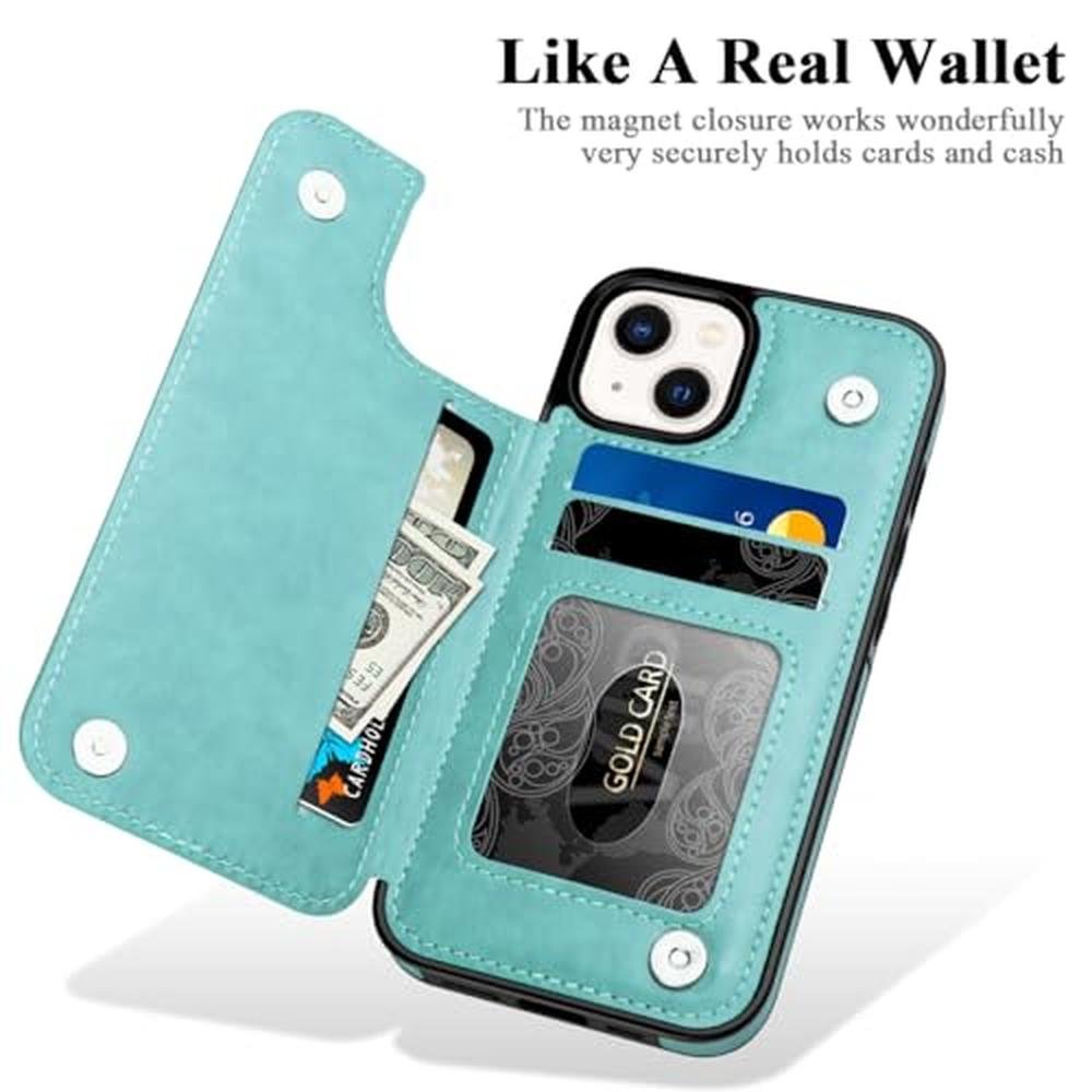 MMHUO for iPhone 13 Case with Card Holder, Flower Magnetic Back Flip Case for iPhone 13 Wallet Case for Women, Protective Case Phone Case for iPhone 13,Mint