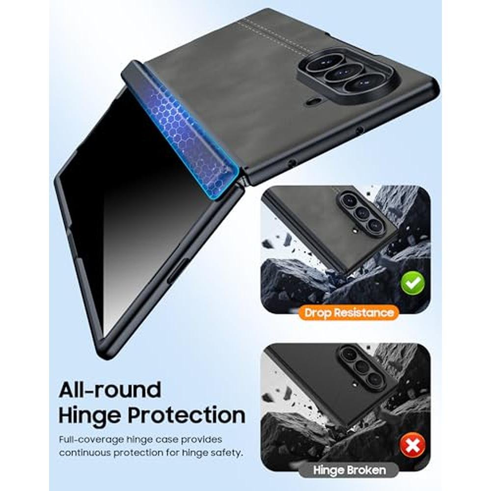 - Ultra-thin leather and matte PC material provide a durable and shockproof cover for your Samsung Galaxy Z Fold 7