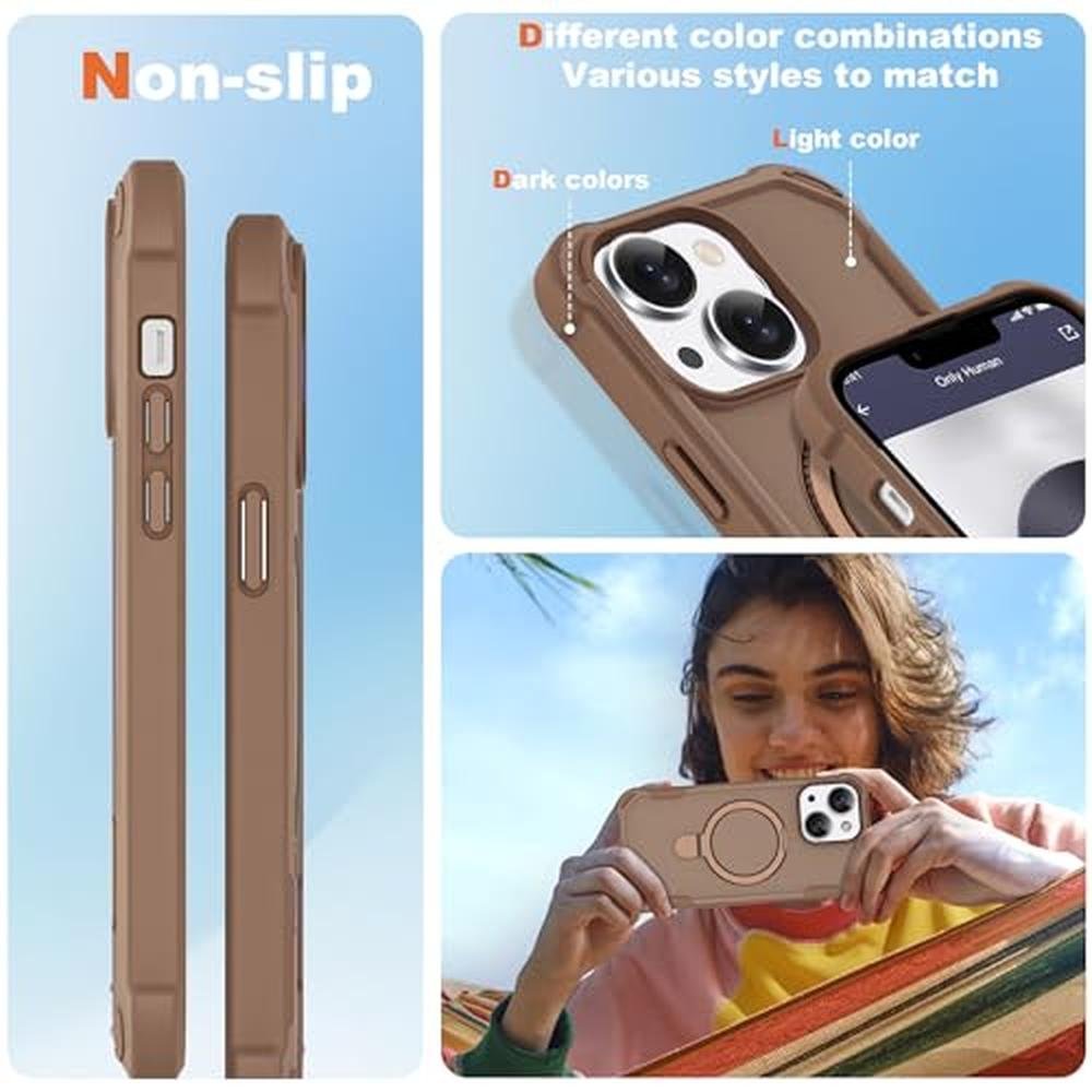 PeakFuel Compatible with iPhone 13 & 14 Case 6.1'' with Magnetic Ring Stand [Military Drop Protection][Compatible with MagSafe] Shockproof 13 & 14 Phone Case for Men Wowen,Brown