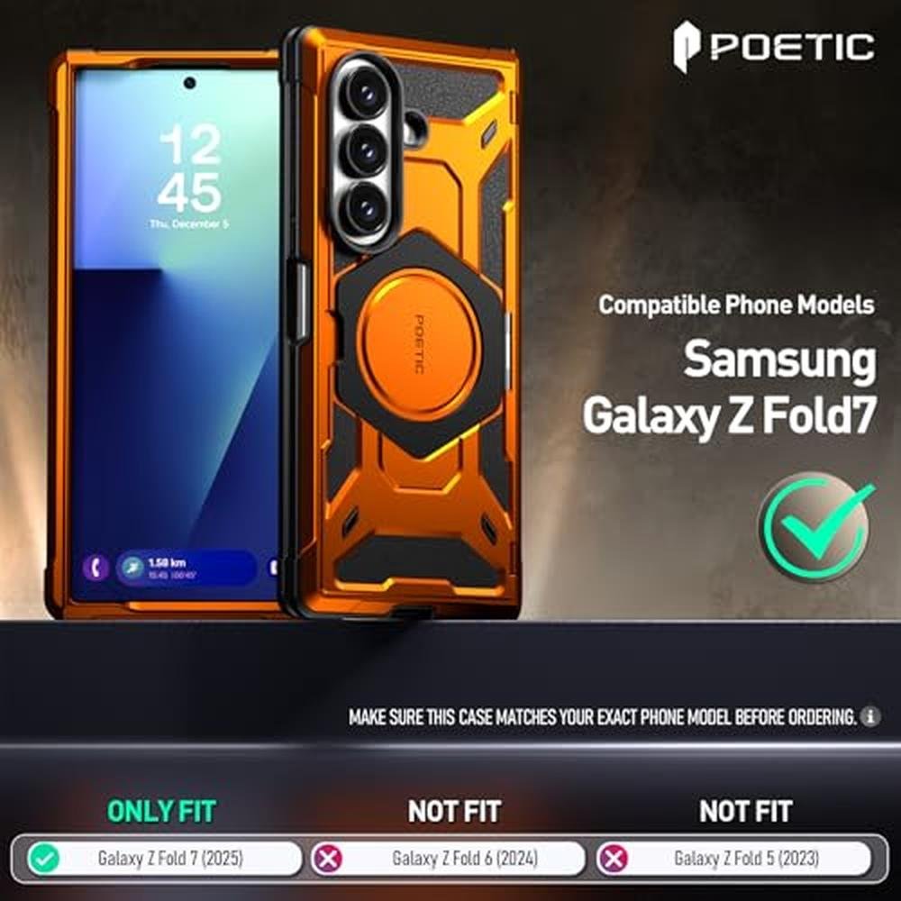 Experience the pinnacle of protection for your Samsung Galaxy Z Fold 7 with the Poetic Spartan case, expertly crafted to deliver superior full-body rugged defense. This premium metallic orange case boasts a built-in screen protector, advanced hinge protection, and a magnetic ring adjustable stand, ensuring your device remains safeguarded and functional. Compatible with MagSafe, the Poetic Spartan case offers unparalleled convenience and seamless integration. As a trusted brand, Poetic cases are renowned for their exceptional durability, style, and high-quality materials, making them a top choice among discerning phone users. Whether you're seeking a sophisticated phone case for your Samsung Galaxy Z Fold 7 or exploring options like the poetic case oneplus 13 or poetic case s23, the Poetic Spartan case is the ultimate solution for those who demand the best.
