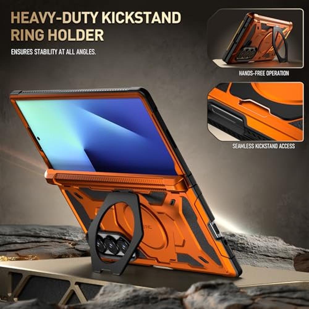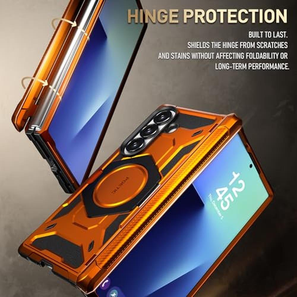 Poetic Spartan Case | Samsung Galaxy Z Fold 7 Metallic Orange Full-Body Rugged Phone Case with Hinge Protection and Magnetic Ring Adjustable Stand | MagSafe Compatible