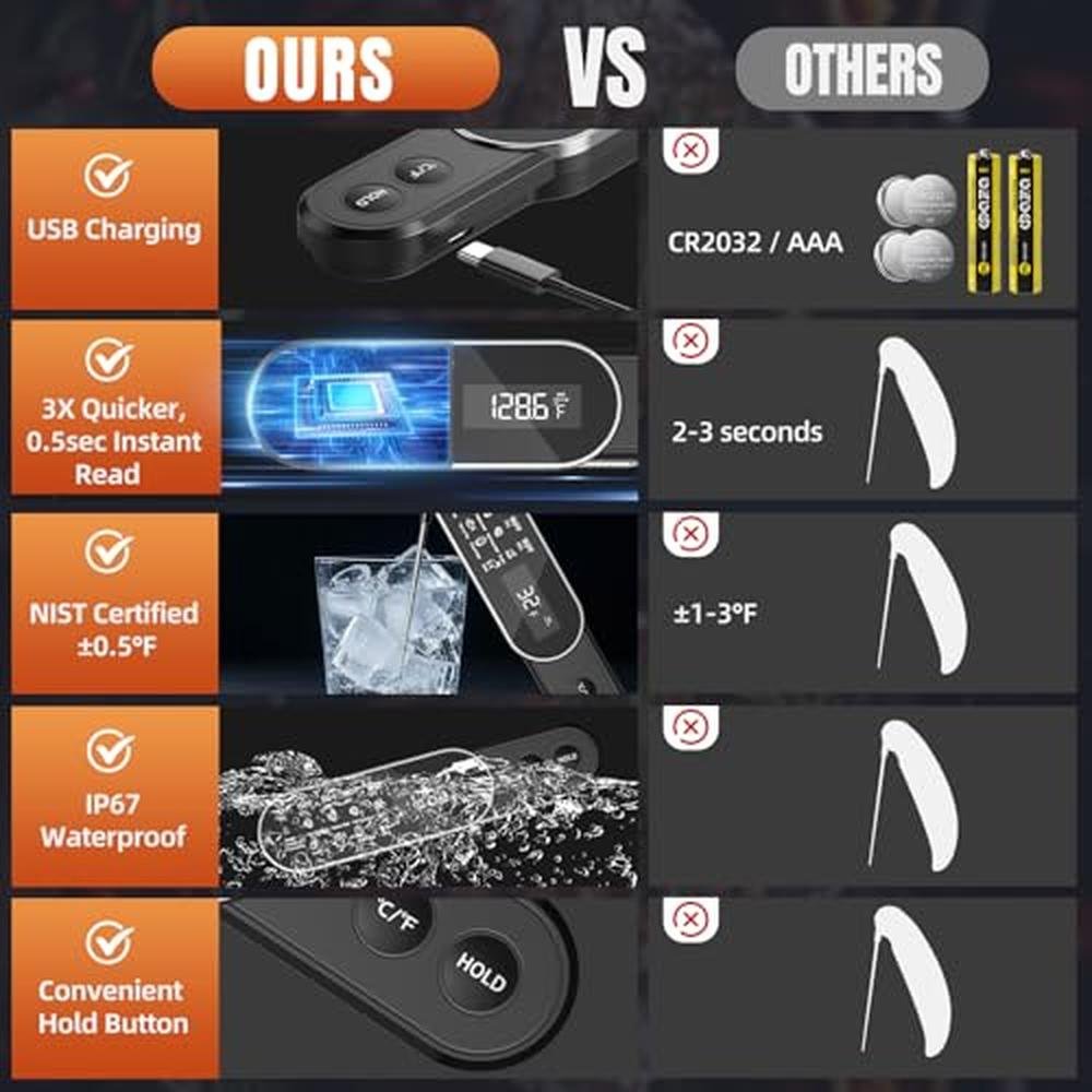 - Features 0.5-second instant read capability and 0.5F accuracy for precise temperature measurements
