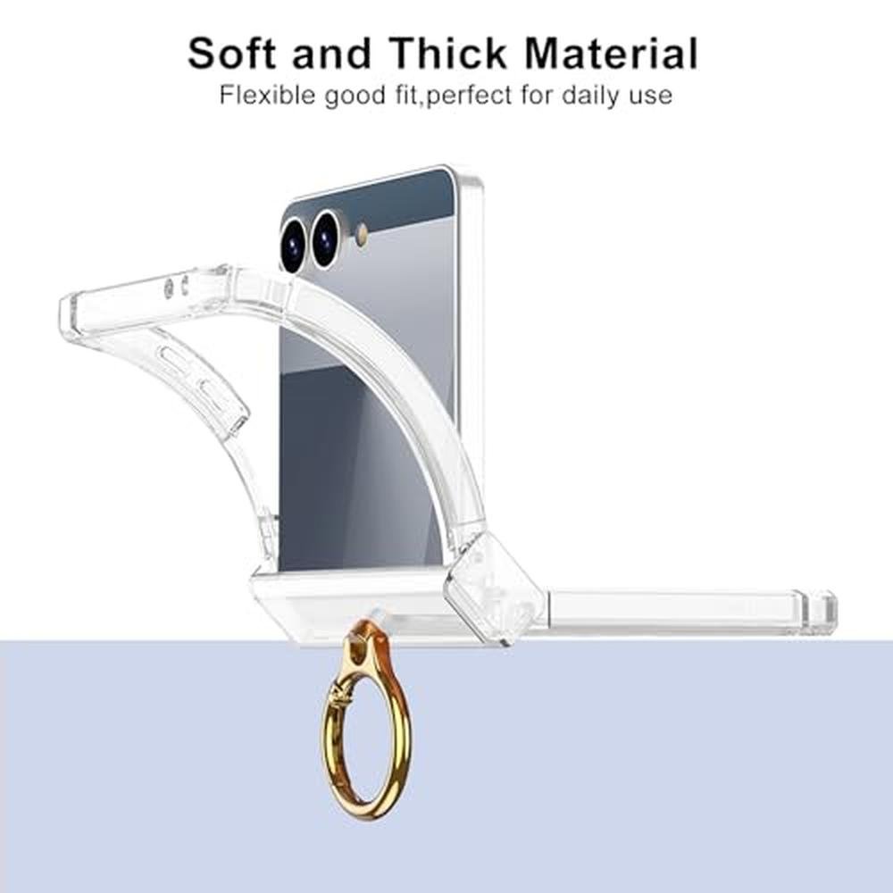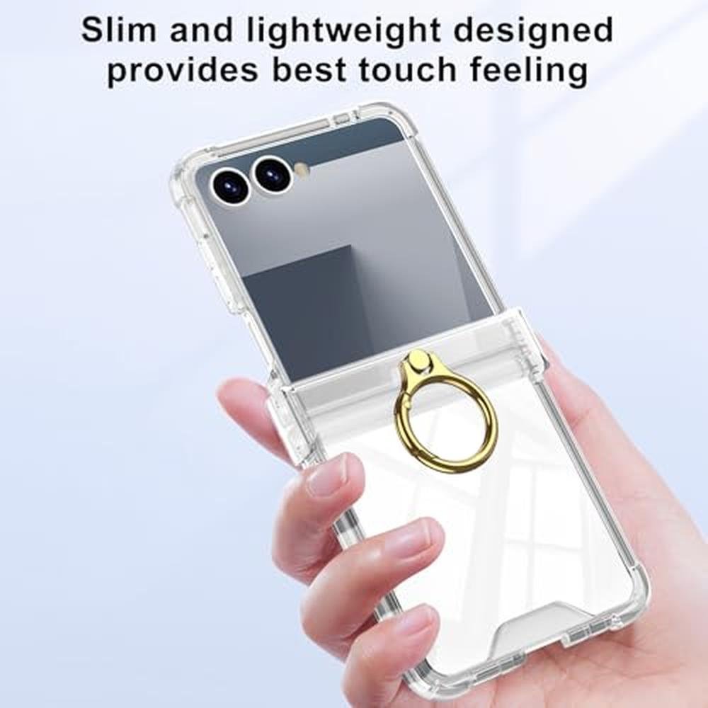 • The case features a luxury transparent hinge protection with ring holder, providing maximum protection for your Samsung Galaxy Z Flip 7
