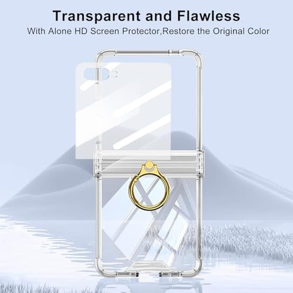 Samsung Galaxy Z Flip 7 Clear Case | PUROOM Luxury Transparent Hinge Protection with Ring Holder | All-Inclusive Shockproof Cover