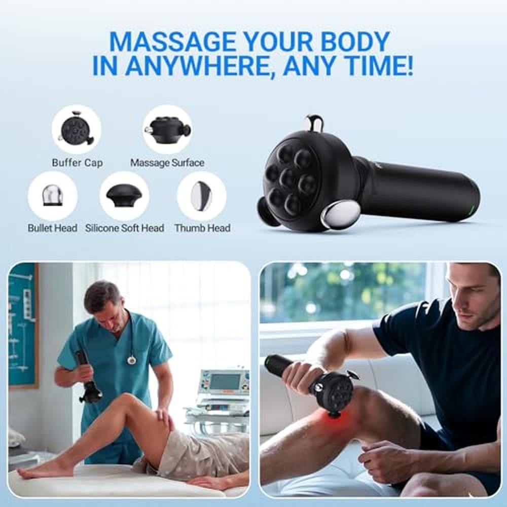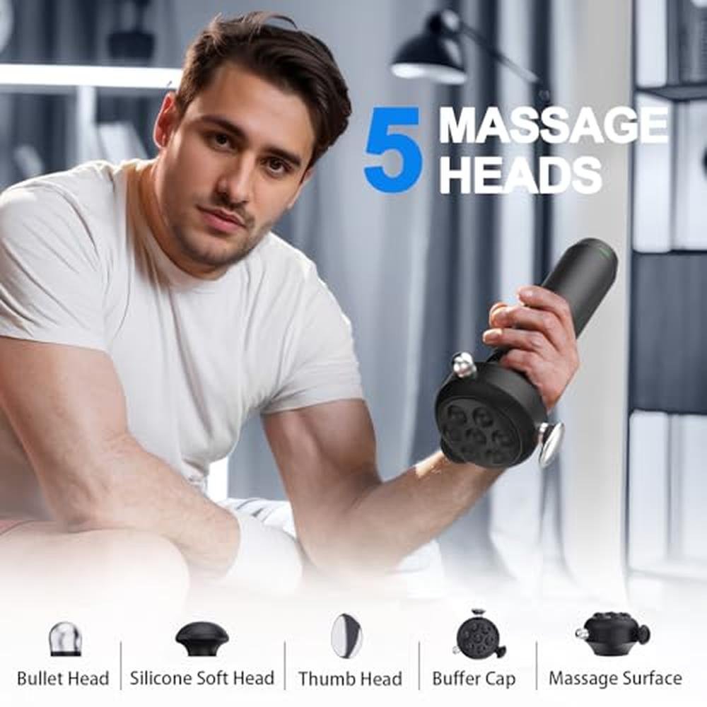 - The RapidGun Pro Max features 5 powerful massage heads, including a thumb-shaped head, to target different muscle groups with precision and ease, ensuring a superior massage experience.
