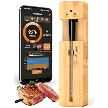 Achieve restaurant-quality meat every time with our Wireless Meat Thermometer featuring high accuracy waterproof probe for precise temperature monitoring. Whether you're grilling, smoking, or roasting, our Bluetooth app control gives you the freedom to cook. With a temperature range from 32F to 572F, this thermometer works perfectly for all types of meat and cooking styles. Perfect for BBQ enthusiasts, home cooks, and professional chefs alike, this long-lasting thermometer makes cooking simple, precise, and enjoyable.