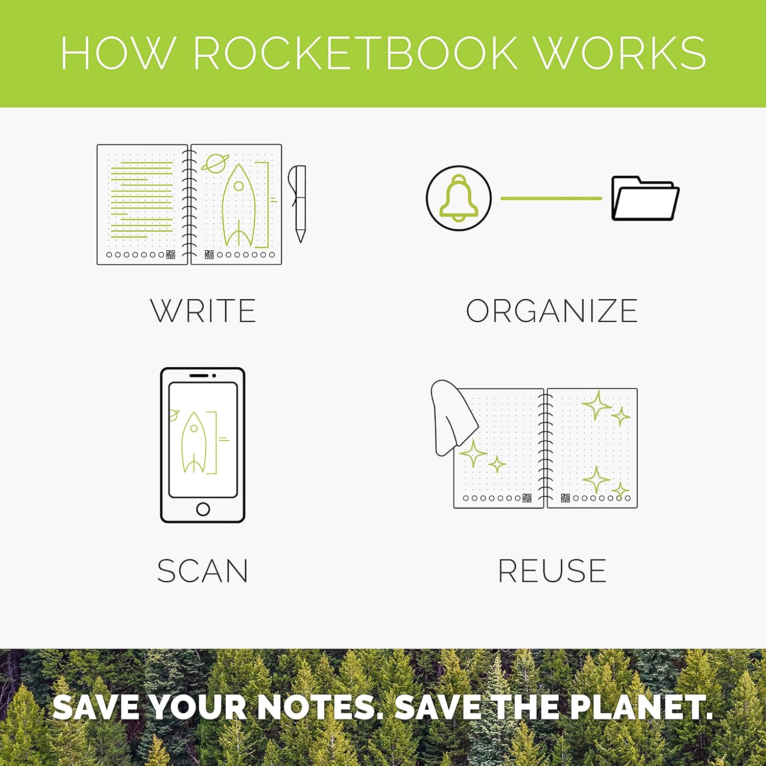 - Cloud Compatible: All handwritten notes can be saved to the free Rocketbook app and easily transfered to your cloud service of choice including Google Drive, Dropbox, Evernote, OneNote, Slack, iCloud, and more! Then, using sophisticated AI technology in the free Rocketbook app, easily name, search, and send your notes and plans